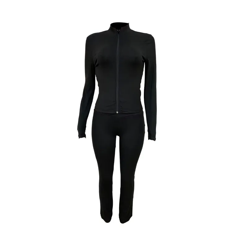 2024 Autumn Women Solid 2 Piece Set Long Sleeve Zip-up Jackets Top + Skinny Pants Slim Streetwear Suit Fitness Yoga Tracksuits
